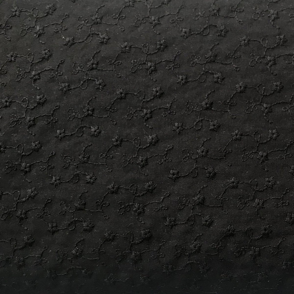 Bomullsbroderi blomster - Svart - STOFFREST PÅ 1 METER PLUSS
