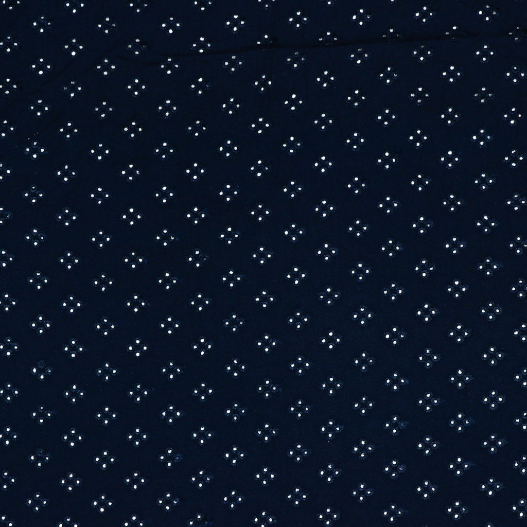 Bomullsbroderi blomster - Jeansblå - STOFFBIT PÅ CA 1,75 METER