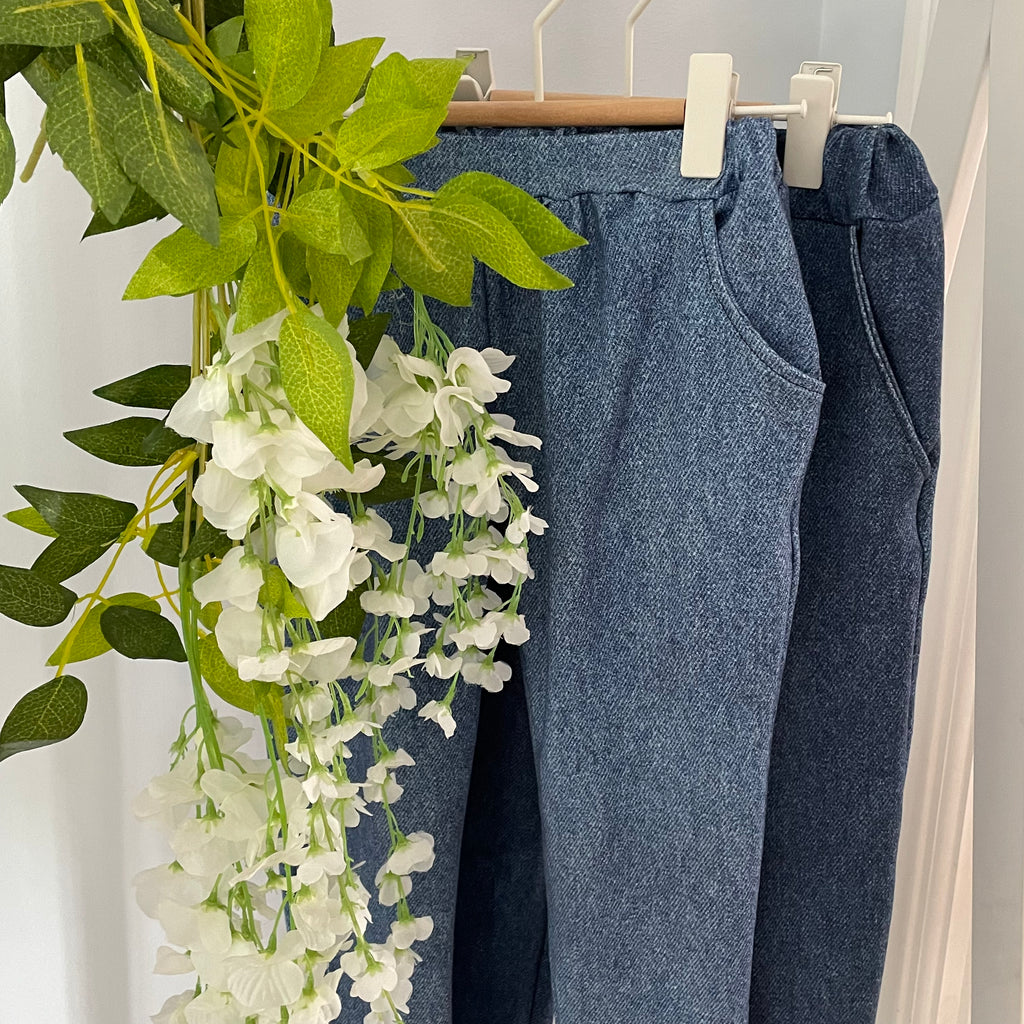 Placid Blue - blå økologisk French Terry Jny Kids - STOFFBIT PÅ CA 1,46 M