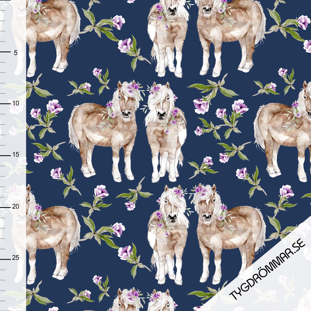 Jersey - Horse dark blue - et fint hestestoff fra Tygdrømmar. Kjempe fint hele året til de som elsker hest og synes hest er best! 🐴 🐴 🐴