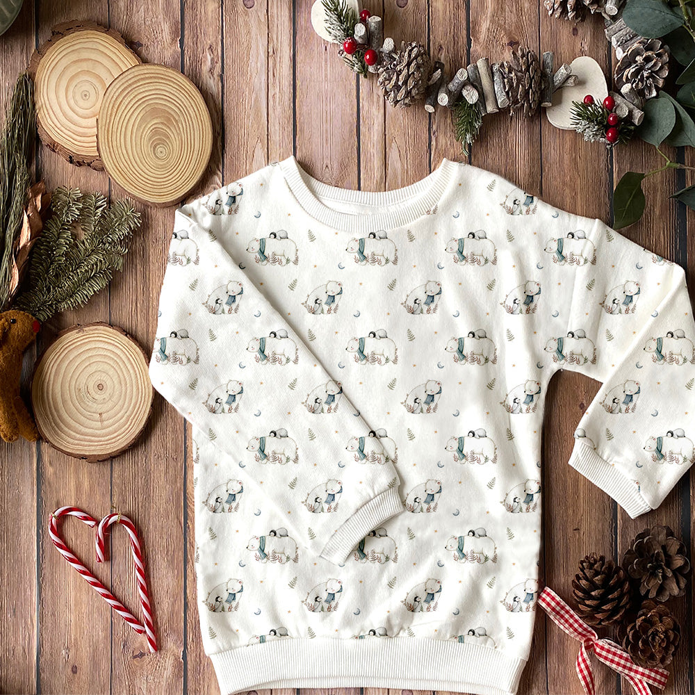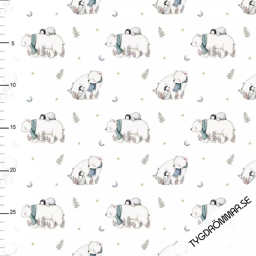 Jersey - Winter Friends - et supersøtt vinterstoff med isbjørn og Pingvin fra Tygdrømmar. Kjempe fint til både jul og førjulstiden 🎄🎅🏻