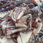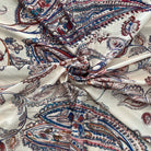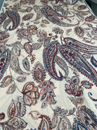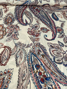 Super Big Paisley Jersey. Dette er et stretch stoff med veldig store motiver av paisley på beige/kremhvit bakgrunn. Et helt unikt stoff du ikke finne andre steder 🌟Se på bilde nr. 4 så ser du hvor enormt stort designet er. Sy din helt unike kjole med dette stoffet!