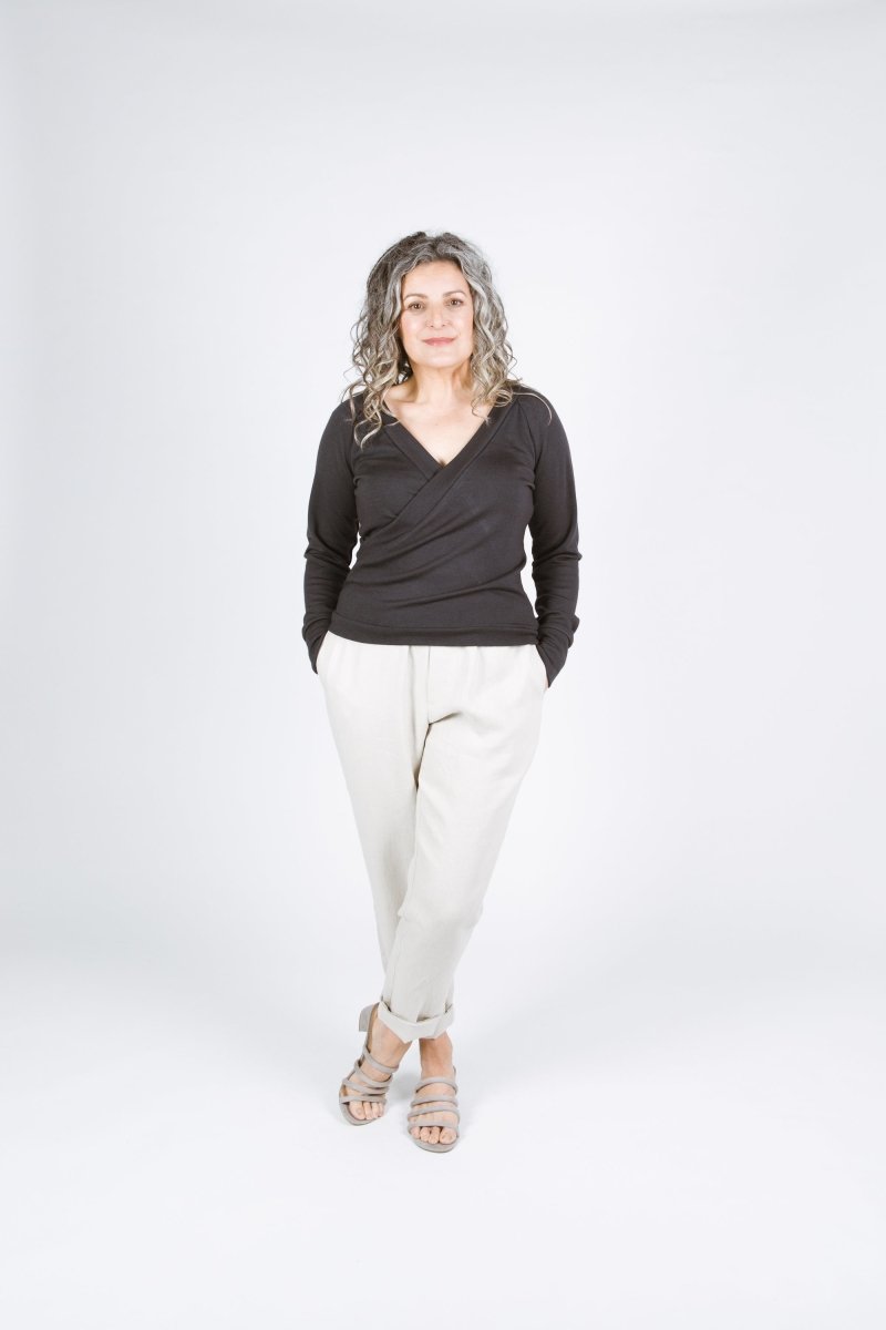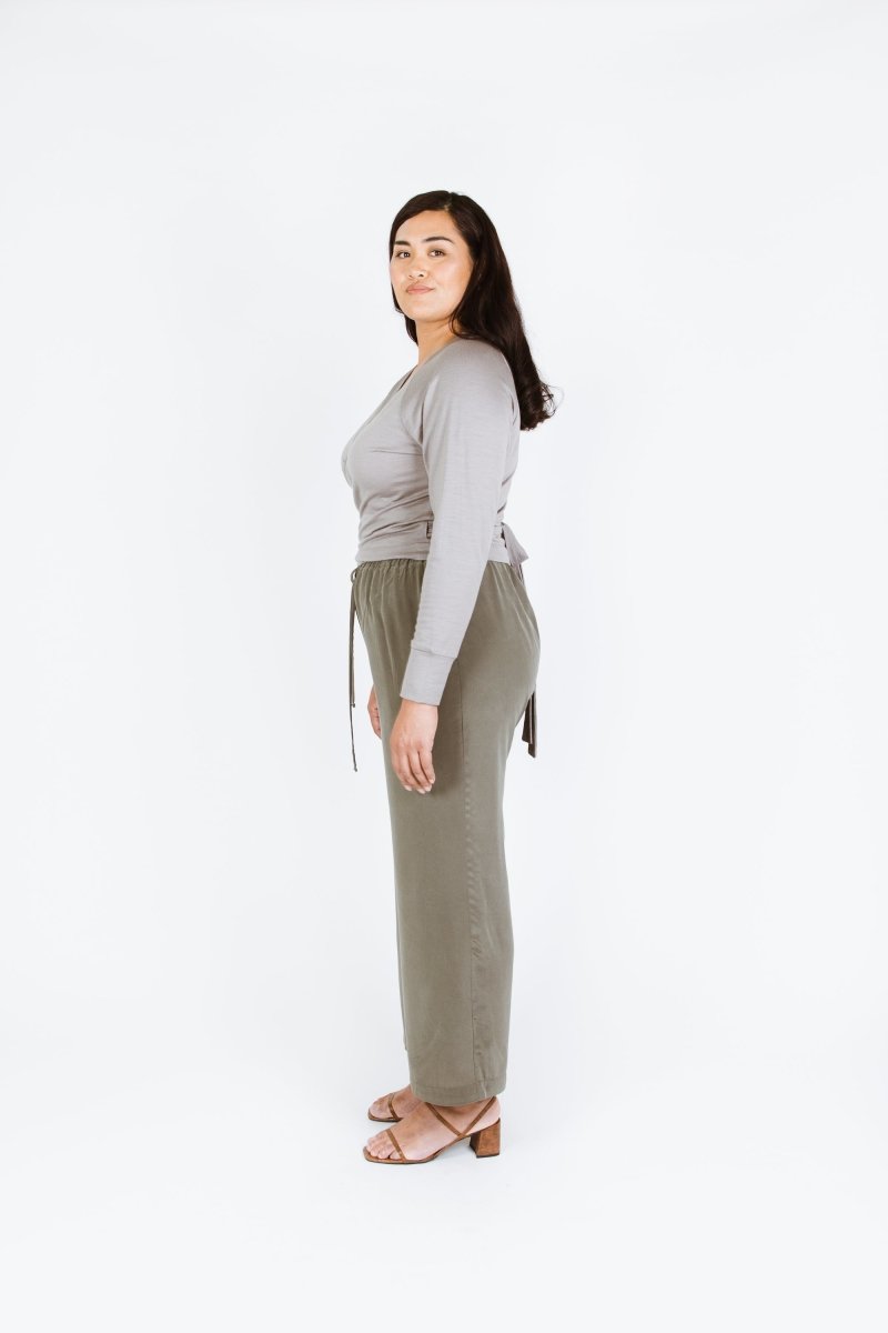 STOFFANBEFALINGER: Vi anbefaler våre lin og linblandiner, TENCEL™ Lyocell, Lawn, eller fast bomull for å sy med faste stoffer til symønstrene fra Papercut Patterns. Hvis mønsteret ønskes å syes i Jersey eller Sweat/Isoli finner du også dette i menyen under Metervare.