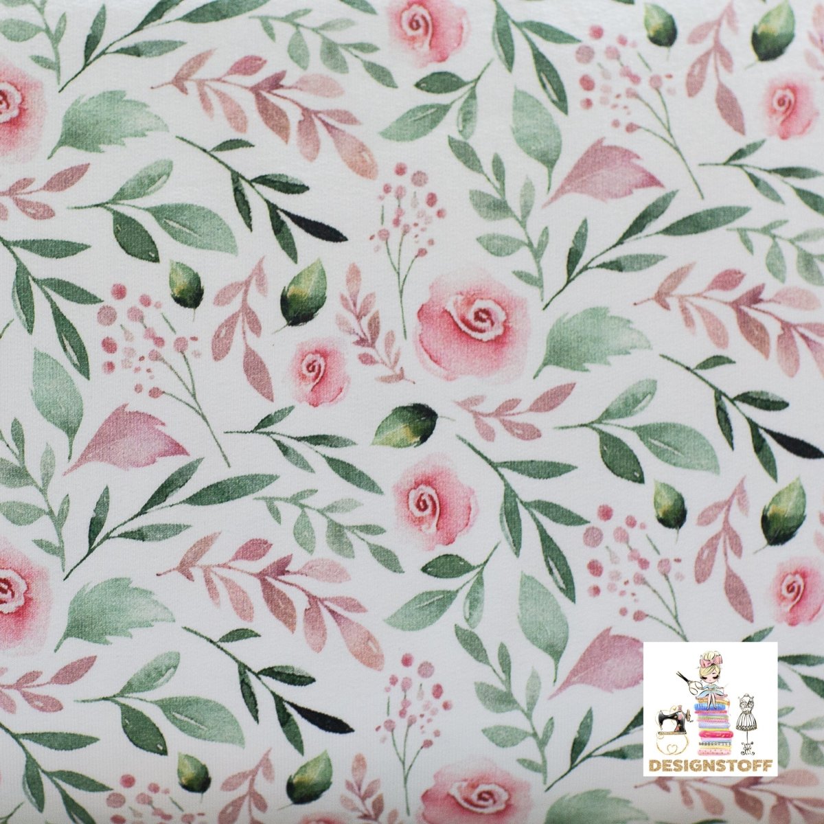 French Terry med aquarelle roser. Klassisk og vakkert stoff du kan sy fine bukser, hoodies og kjoler med 🌹 Fin til både liten & stor.