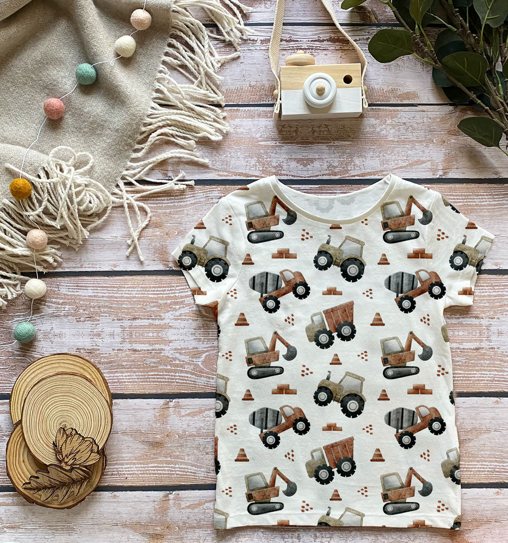 Jersey - Construction - et fint kjøretøystoff i rust fra Tygdrømmar. Kjempe fint hele året til de små som liker traktor, gravemaskin m.m. 🚗 🚚 🚜