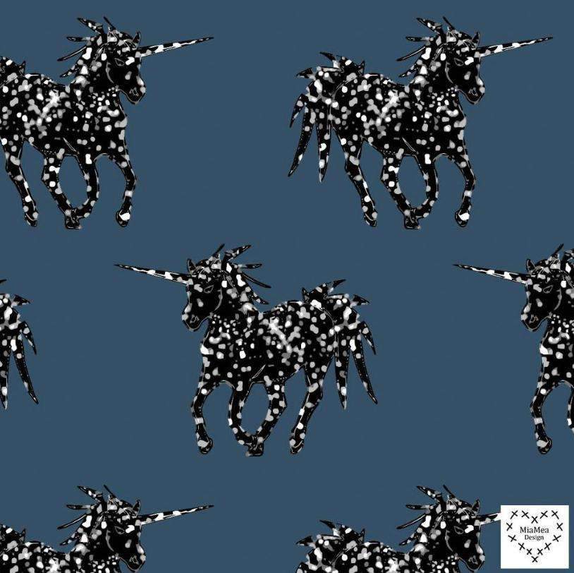 Enhjørninger blå økologisk bomullsjersey - MiaMea Design