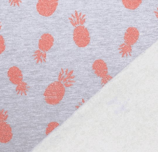 Sweatshirt fleece i bomull og polyester. Kjempe fine glitter-ananas på en delikat gråfarge.