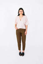STOFFANBEFALINGER: Vi anbefaler våre lin og linblandiner, TENCEL™ Lyocell, Lawn, eller fast bomull for å sy med faste stoffer til symønstrene fra Papercut Patterns. Hvis mønsteret ønskes å syes i Jersey eller Sweat/Isoli finner du også dette i menyen under Metervare.