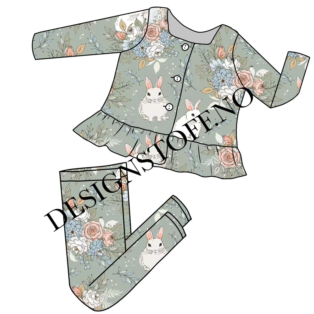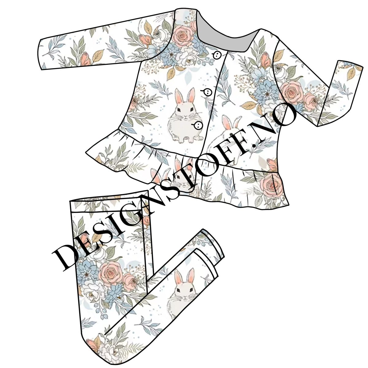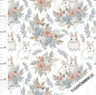Vevd bomull - GARDEN BUNNIES WHITE - utrolig søtt design med små kaniner og blomster. Dette stoffet er yndig. Sy søte klesplagg som kjoler og skjørt til de små 🌸🎀🌼 Dette stoffet har vi også i jersey i både hvit og grønn farge!